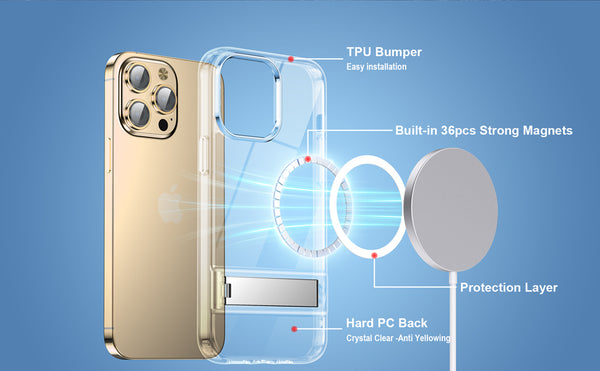 - [Great Compatible with MagSafe Case]: This case is Compatible with iPhone 14 series Compatible with MagSafe, which can work well with all kinds of Compatible MagSafe accessories, Built-in 38 pieces quadrupole magnets, such as wireless chargers, wallets, battery packs, and car mount. ( Note: All Compatible MagSafe cases cannot work with a regular magnetic car mount. Only work with new Compatible with MagSafe car mounts.)